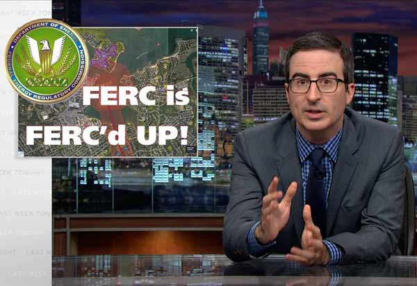 I tried googling FERC, looking for more information on this agency, but all that comes up are positive views. Some say FERC gets some or all of its funding from the companies it regulates, creating a conflict of interest. Is that true? I’m not sure, I couldn’t find that information. But Oliver’s researchers will, along with FERC’s record on approving permits and attitude toward issues like examining whether multiple proposed pipeline are really necessary, and whether they ever look at the cumulative impact of everything they’re permitting.