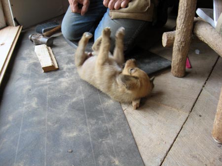 - Mocha helping with the floor project