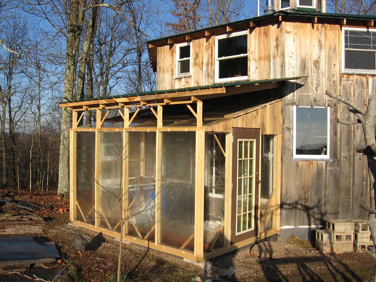 - In winter the sun angle is low enough that sunlight somes through glass in the lower roof and into the house through the sliding door. In summer the sun is so high in the sky the upper roof shades the greenhouse (and the house stays cooler)