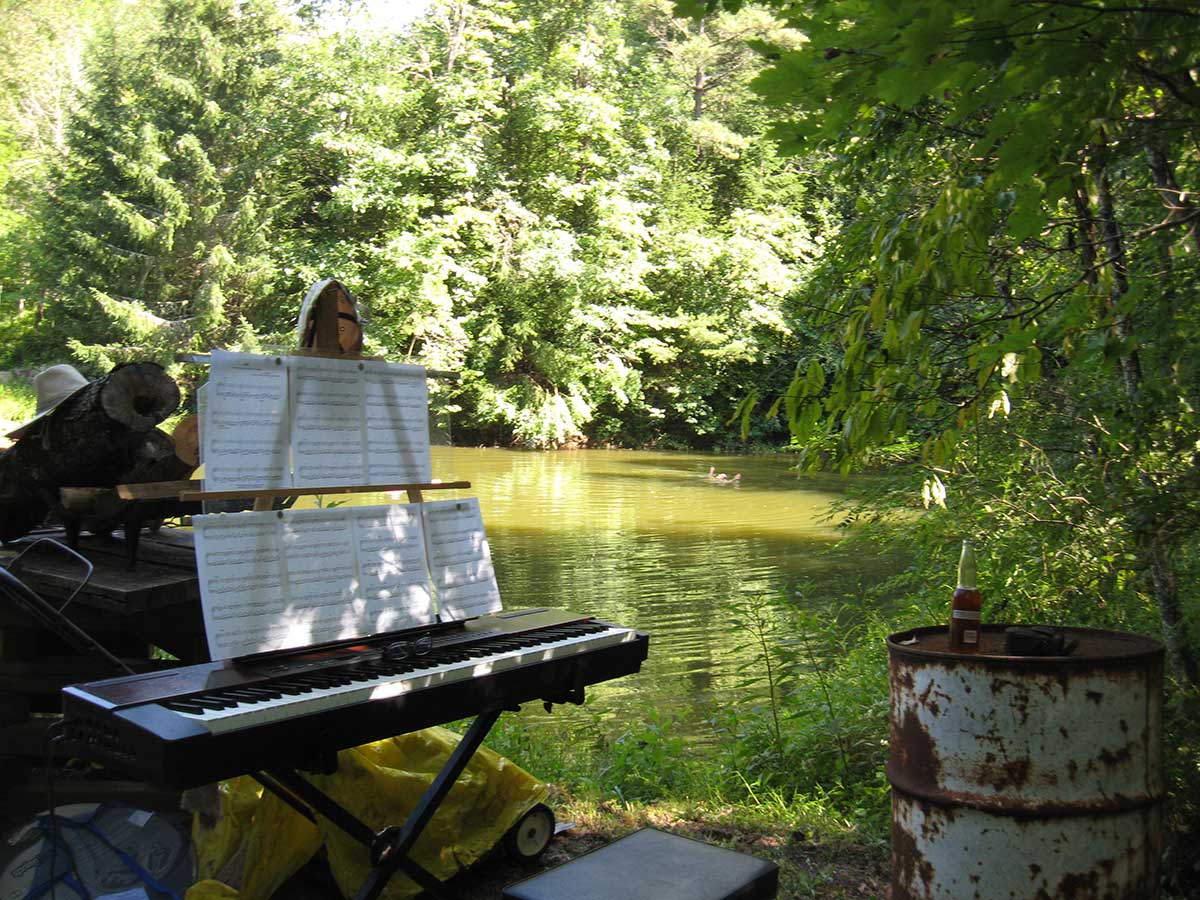 - Everyone is in the pond exept the photographer/piano-player and the drummer, who is also on break