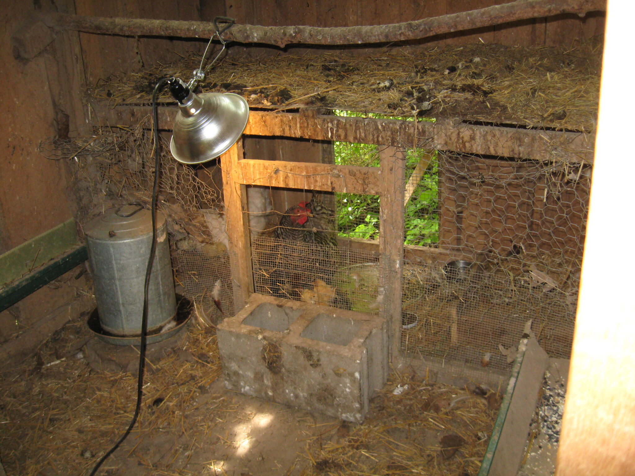 - Original chickland, with two hens and about 18 chicks