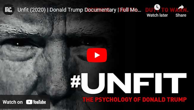Unfit: The Psychology of Donald Trump Don Alejandro August 28, 2020 Esoteric Media Comments Is Donald Trump fit to hold the office of President of the United States? An eye-opening analysis of Trump by leading US mental health professionals and Republican strategists, on the record for the record. Related PostsJan 16 2026 Esoteric Media The third barrier: “Your papers, please”Mar 12 2025 Esoteric Media Dunning-Kruger Effect Curve vs Trump Effect CurveAug 16 2023 Esoteric Media Gallery Conspiracy TheoriesJul 29 2023 Esoteric Media Gallery Paradox Gallery